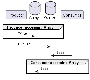 - Consumer waits for this pointer to become non-null, indicating Producer has published the array.